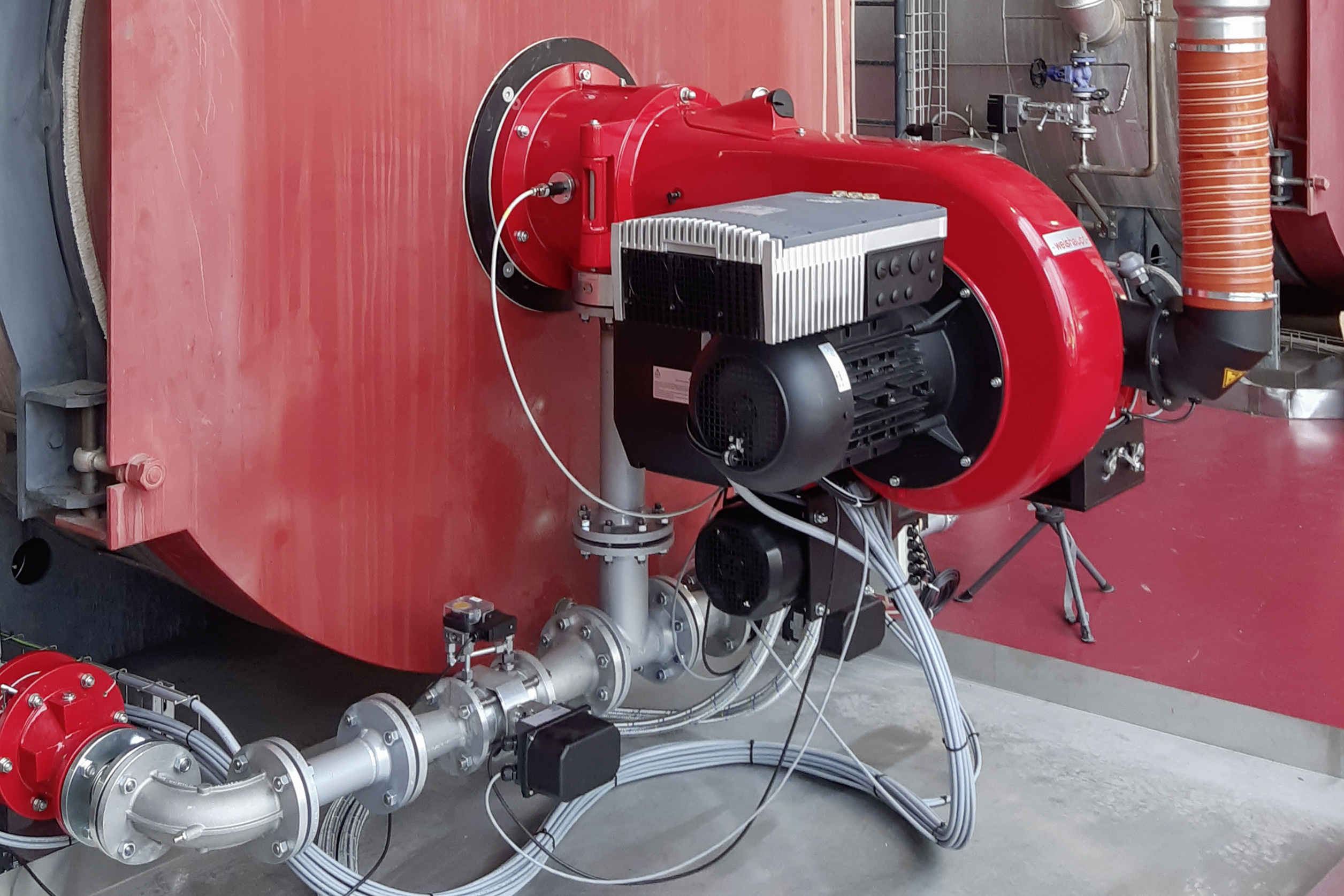 La sostenibilidad también fue una prioridad en la modernización de la generación de vapor. Aquí se utiliza como combustible el biogás procedente de las aguas residuales de la fábrica de cerveza. Otros combustibles utilizados son el gas natural y el gasóleo EL. Un quemador para quema simultánea Weishaupt monarch® WM-GL 30 4LN con 3.000 kW sustituyó a un quemador de gas existente en la caldera de vapor. Son posibles los siguientes modos de funcionamiento: